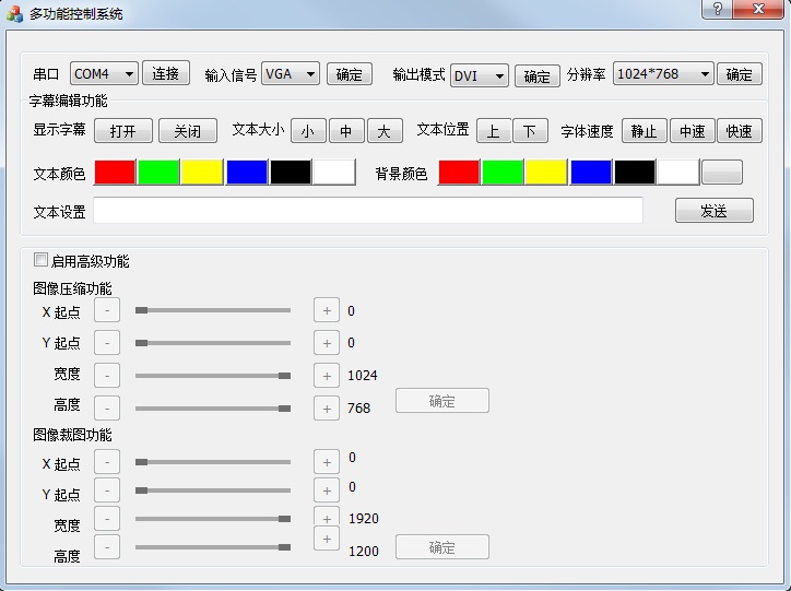 用户可以根据自身需求裁取输入信号的任何一部分放到大显示单元全屏显示,如下图所示: